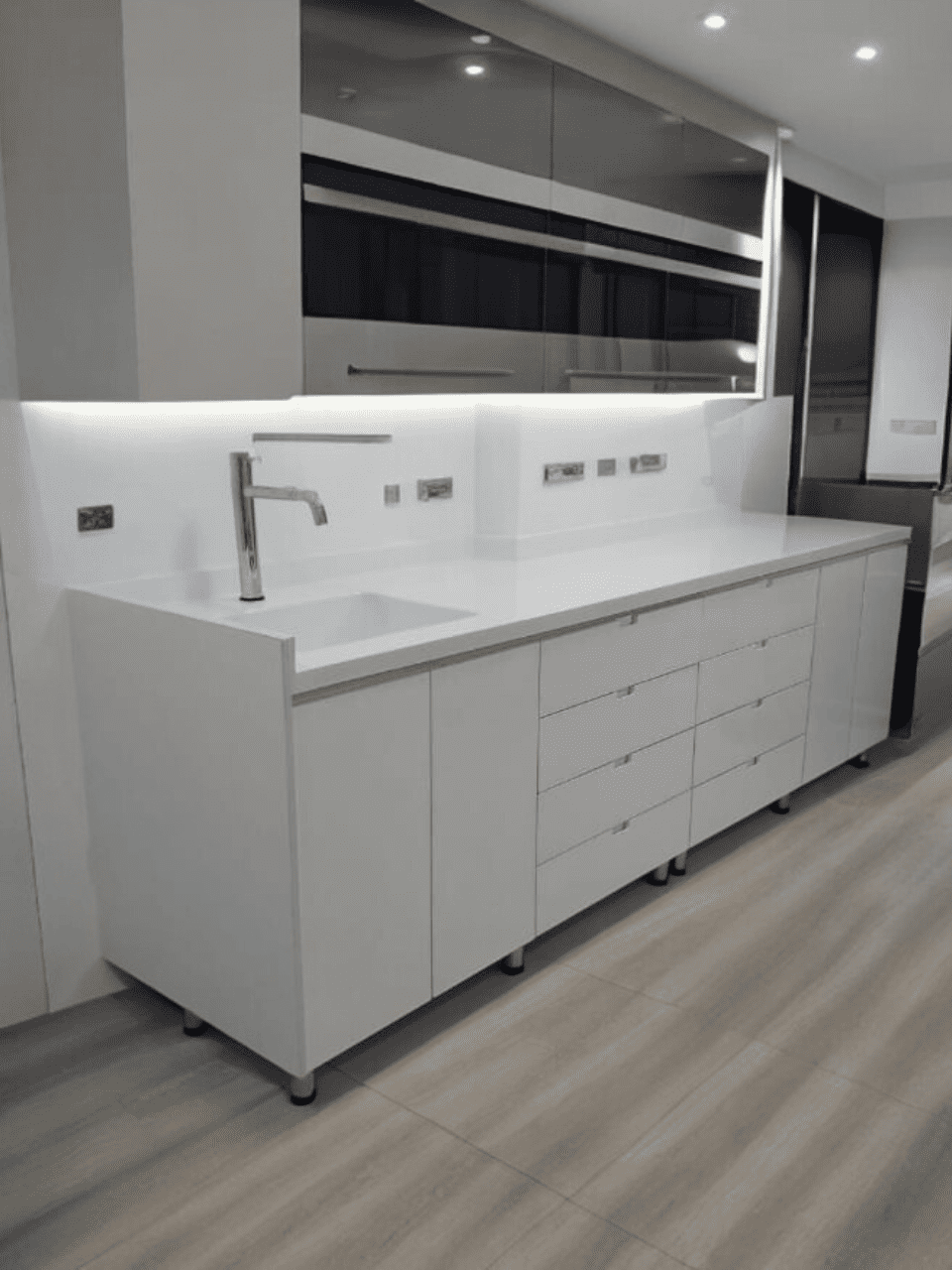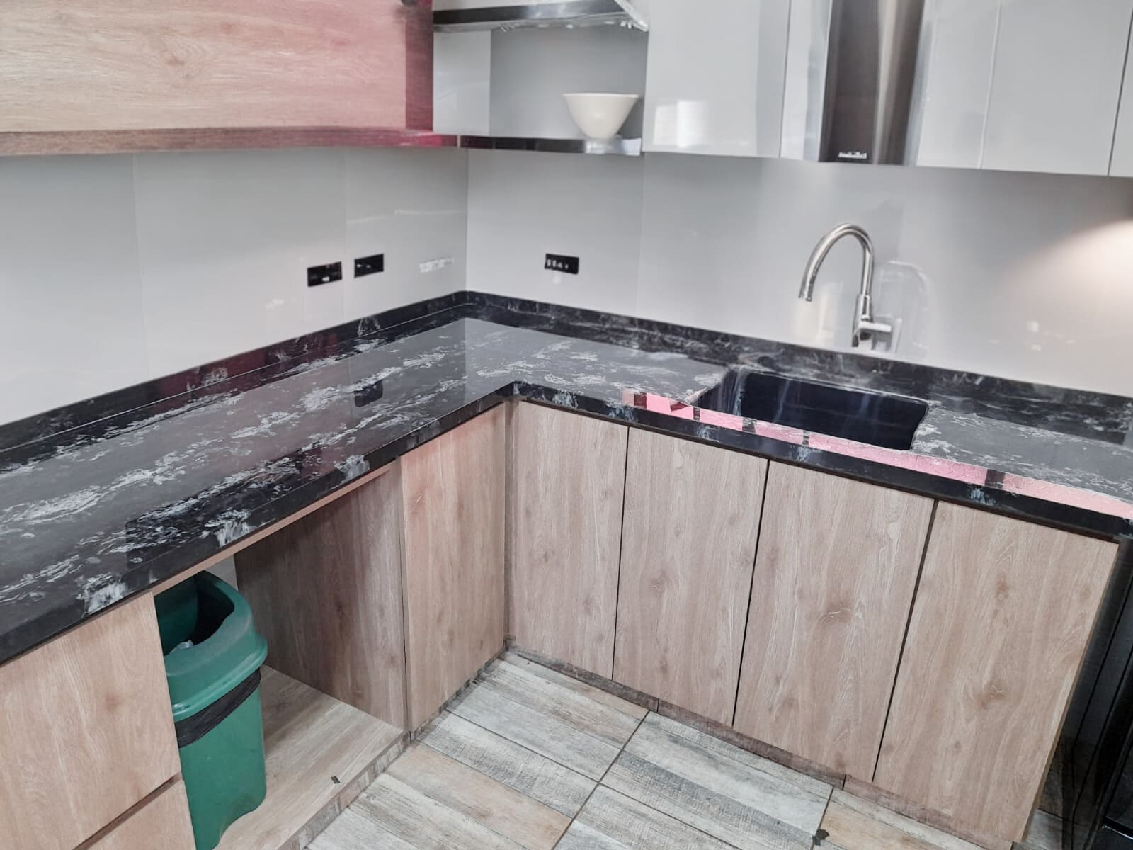 Cubierta para cocinas integrales en polieston y mármol sintético.